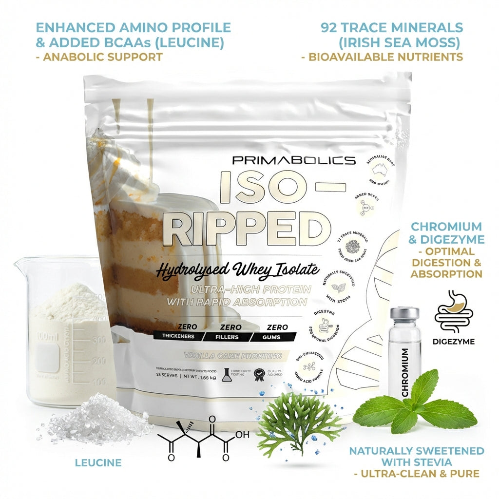 ISO RIPPED is a lean, mean mix of Hydrolysed WPI, WPI and BCAAs which in itself is amazing on the gut for digestion.